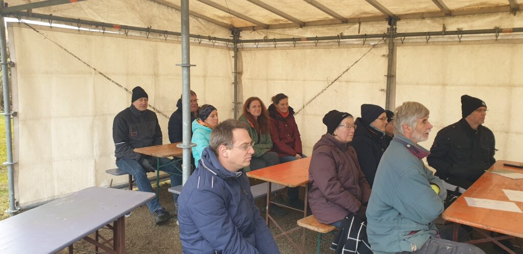 Trotz der kalten Witterung ließen sich die Obstbauliebhaber nicht abschrecken. Zur Stärkung und zum Aufwärmen gab es heißen Kaffee und ein herzhaftes Vesper mit Fleischkäsebrötchen.